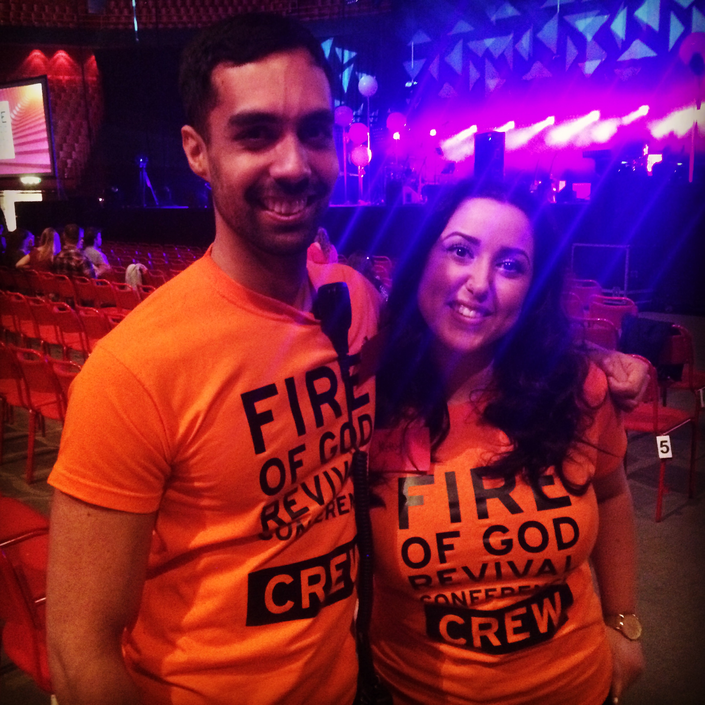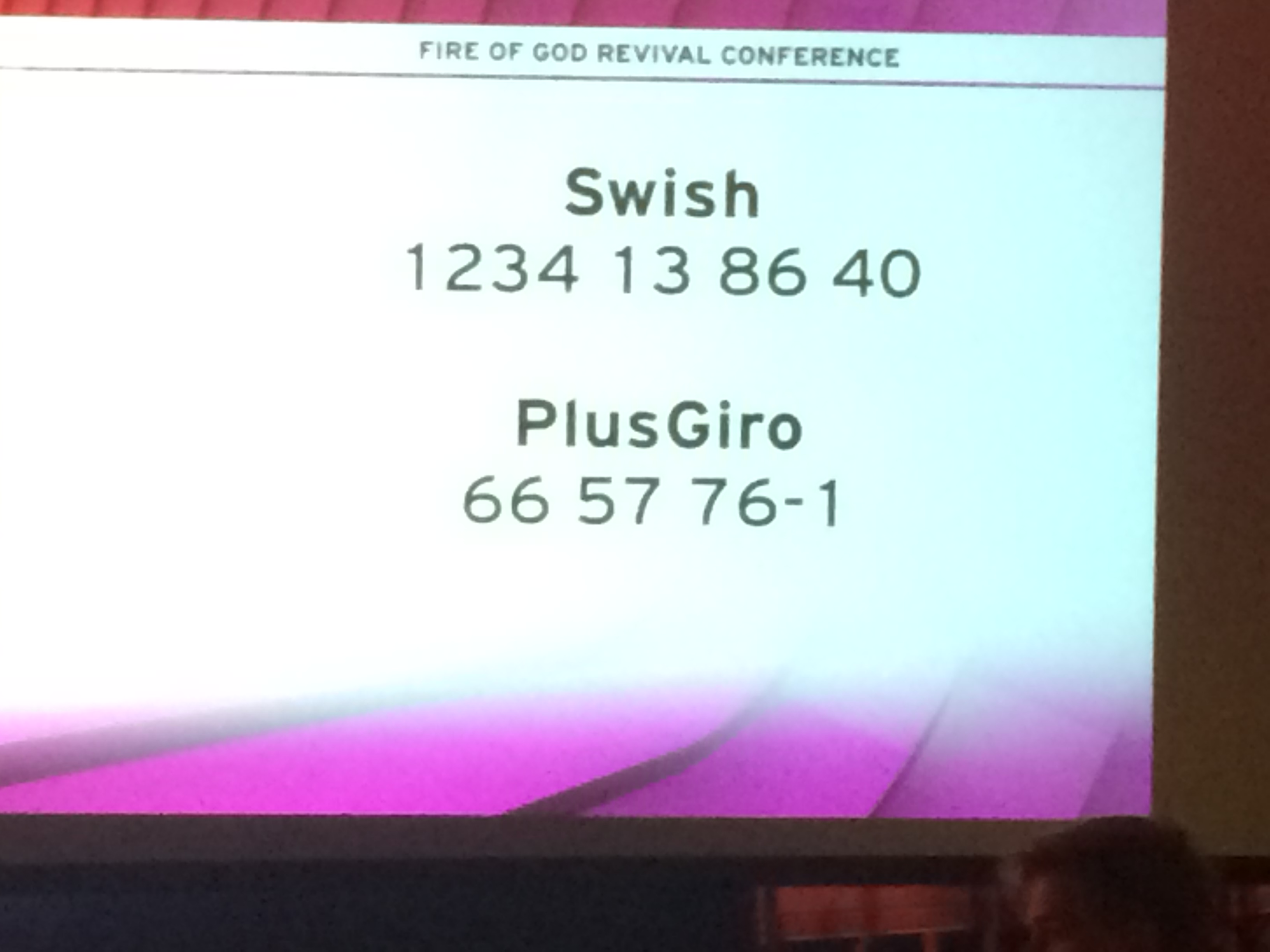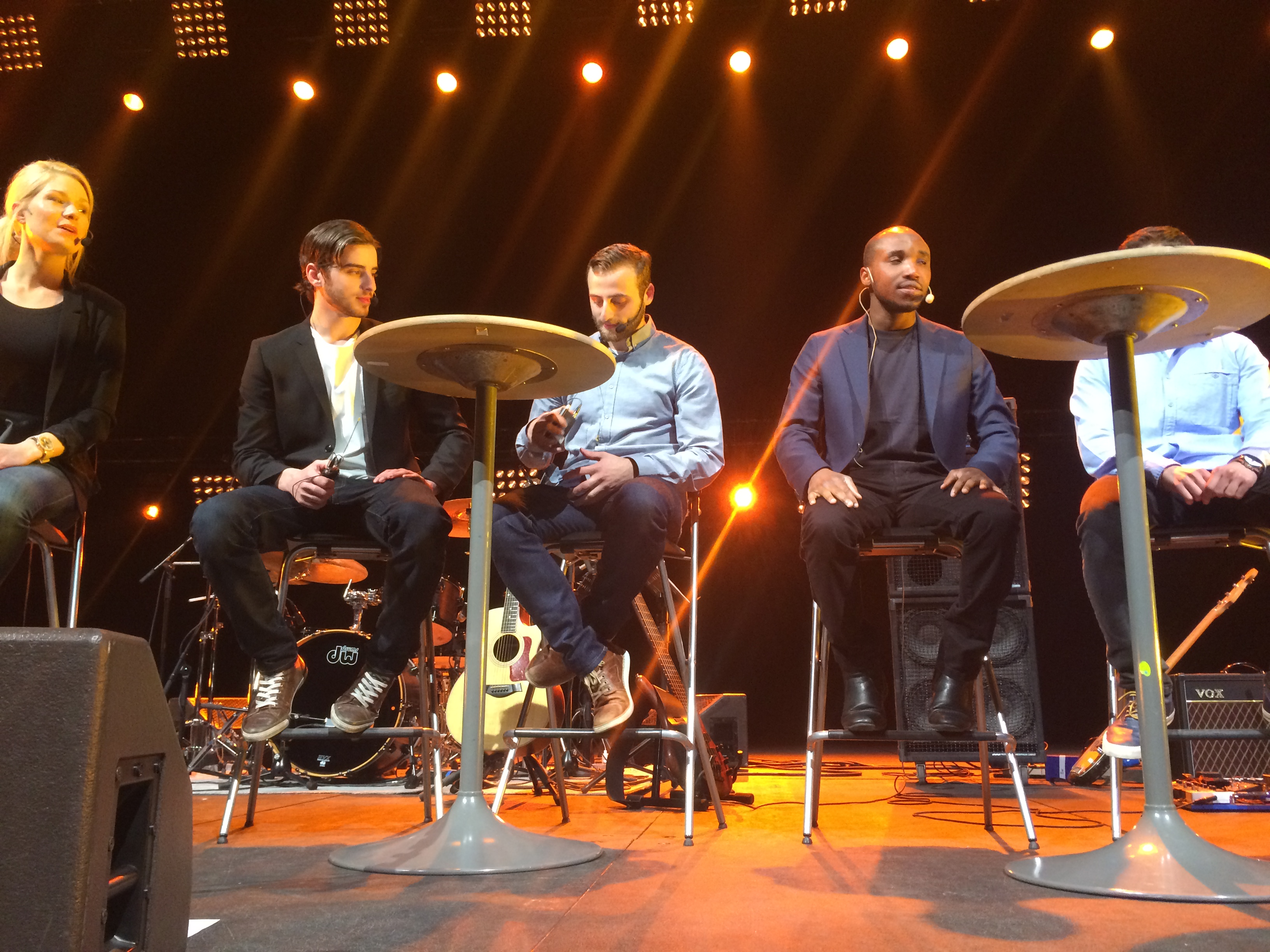 En man och en kvinna uppenbarar sig på scenen ur skuggorna. Redan för femton år sedan, berättar de, fick en gammal kvinna en vision om att det skulle hållas en konferens i Globen. Hon visste inte då att det var själva Globen hon fått uppenbarad inför sig, men en rund byggnad med ingångar som sedan visade sig stämma exakt med verkliga Globen. Vi skriker sedan ut Jesus namn tre gånger. – Jesus, Jesus, Jesus. Det känns kraftfullt.